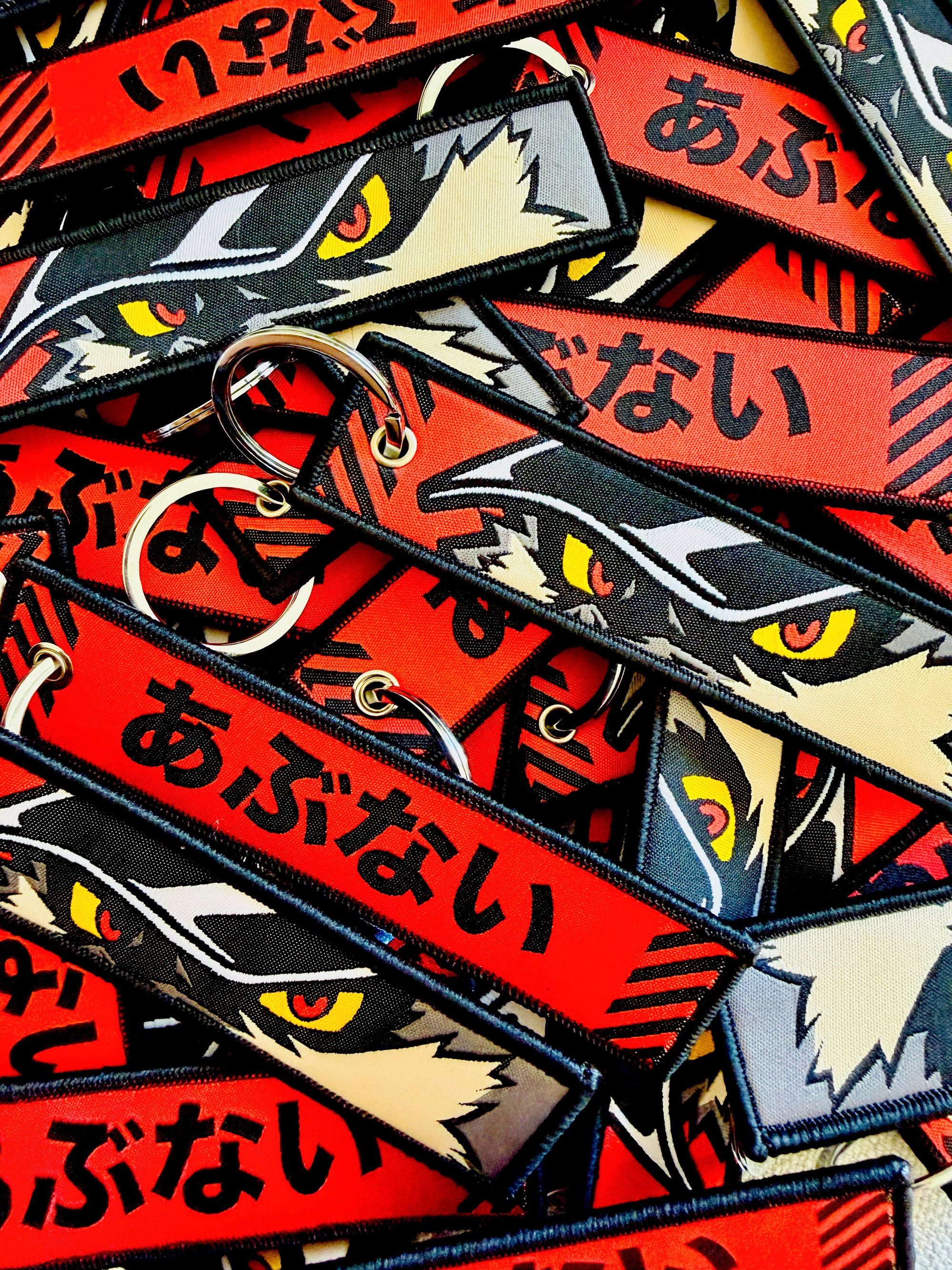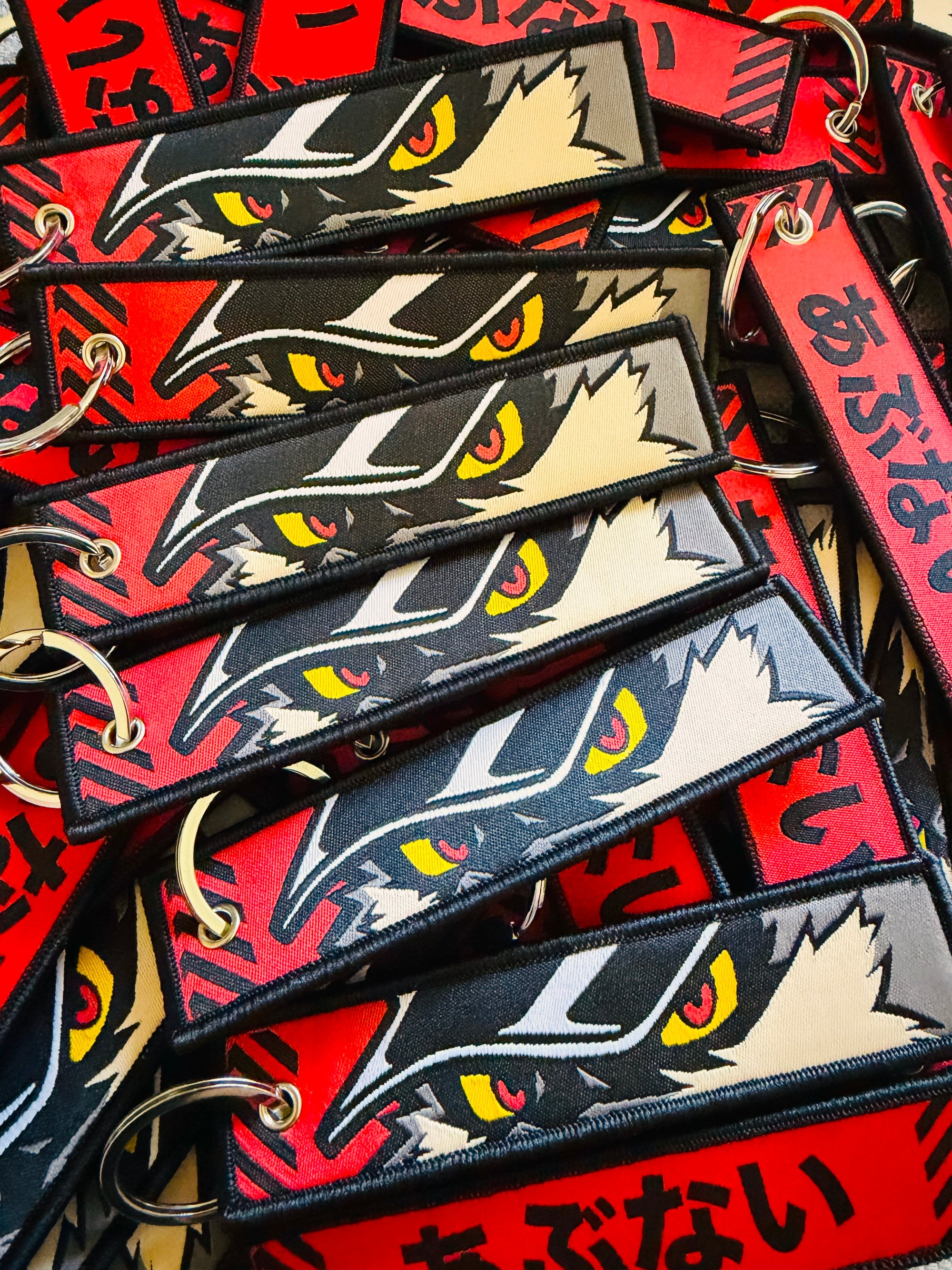 - Embroidered Jet Tag with silver keychain ring